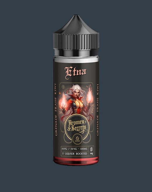 Etna d’Arômes et Secrets, la maîtresse des volcans, libère une explosion de grenade, fraise et kiwi, pour une expérience fruitée aussi explosive que délicieuse.