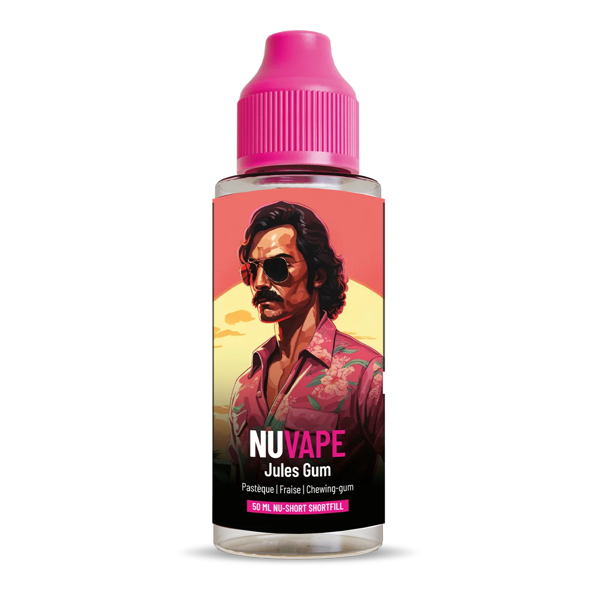 Découvrez le délicieux Jules Gum Nu-Short 50ml de Nu Vape, une expérience de vapotage unique en son genre. Ce liquide vous offre une saveur de chewing gum à la fraise sucrée, enrobée d’une note rafraîchissante de pastèque juteuse. Chaque bouffée vous transportera dans un univers fruité et sucré, pour une expérience de vapotage inoubliable. Avec sa contenance de 50ml, vous pourrez profiter de cette saveur délicieuse pendant longtemps.