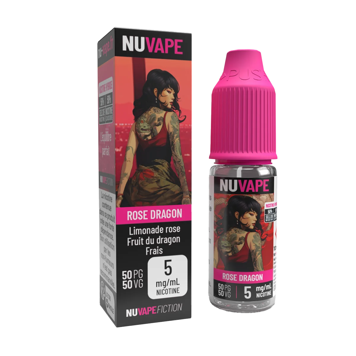 Découvrez le succulent mélange de la limonade rose à la framboise et des fruits du dragon juteux et sucrés avec une légère touche de fraîcheur grâce au Rose Dragon Nu-Blend 10ml de Nu Vape, disponible en 5, 10 et 20 mg/ml de sels de nicotine.